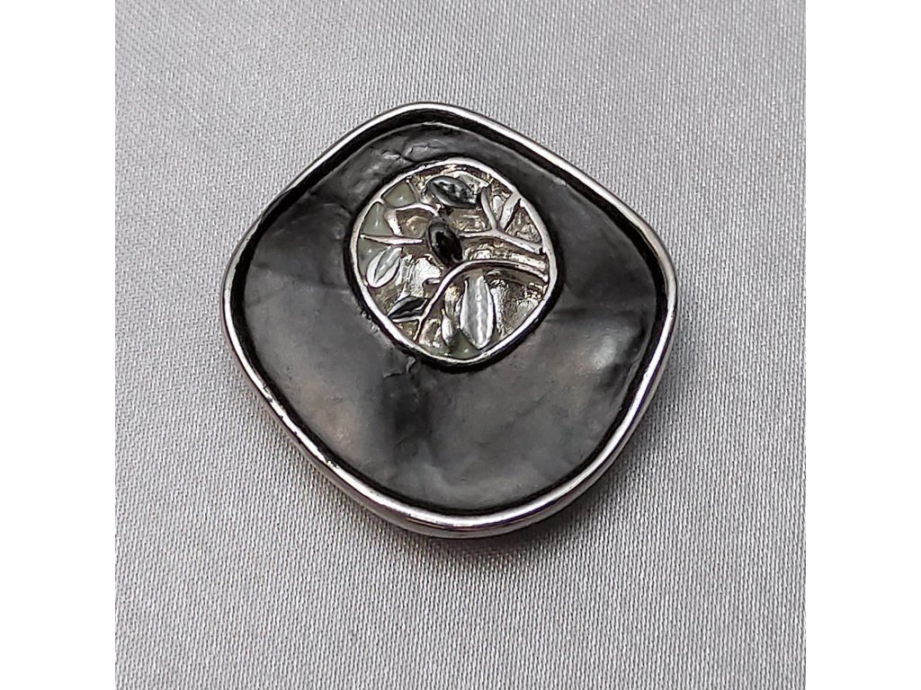 Zajímavá menší magnetická brož nepravidelného čtvercového tvaru s černou výplní.