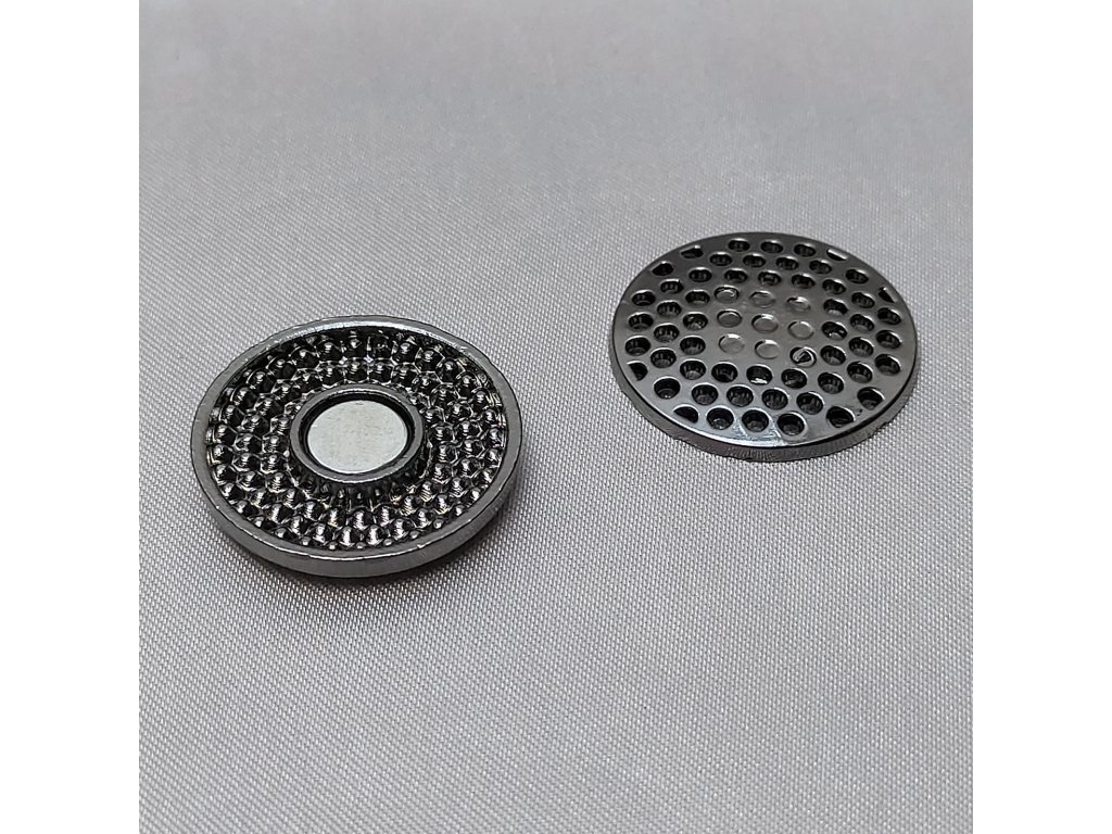 Menší, elegantní kruhová brož s pevným magnetickým zapínáním, která se skvěle hodí na sepnutí jemných materiálů, jako jsou svetříky nebo šály.