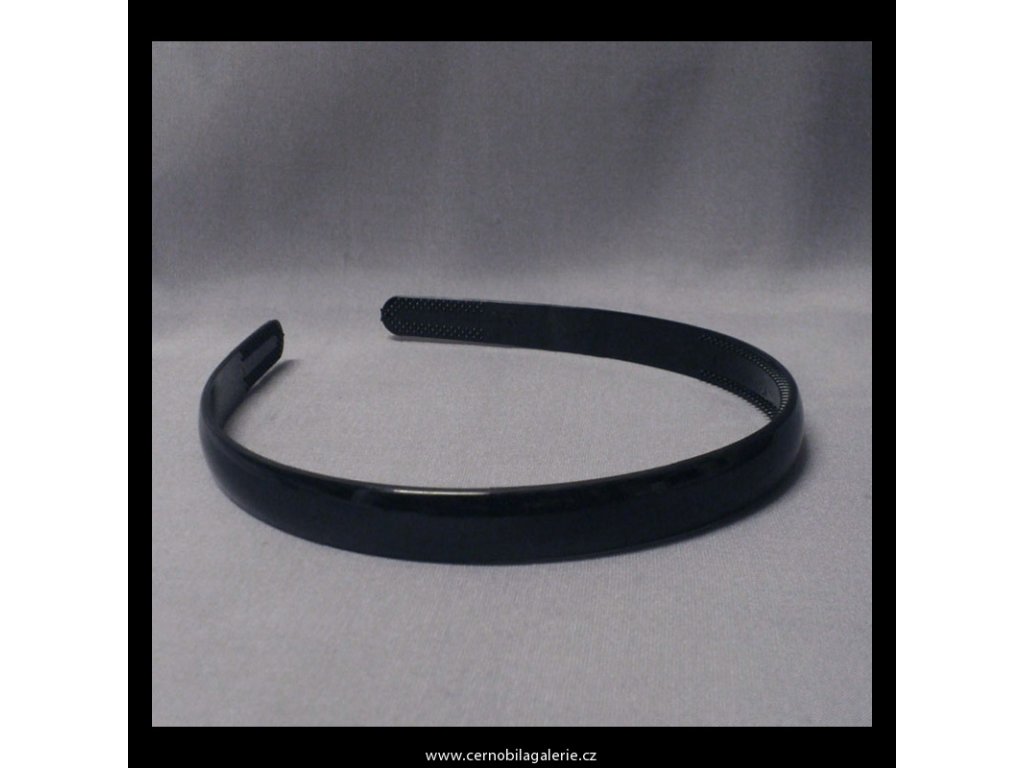 Klasická plastová užší čelenka do vlasů v černé barvě a hladkém lesklém provedení, díky drobným hřebínkům na vnitřní straně dobře drží a z vlasů nesklouzává.