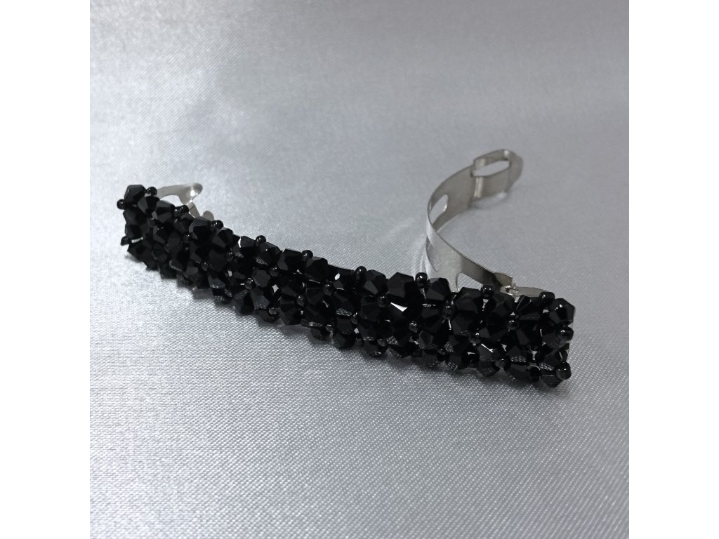Úzká francouzská spona do vlasů zdobená černými broušenými korálky.