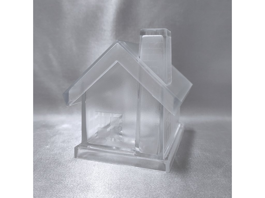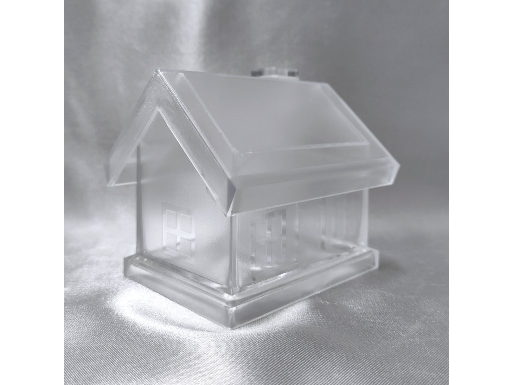 Domek je z transparentního plastu a ze spodní strany má zátku pro vybrání.