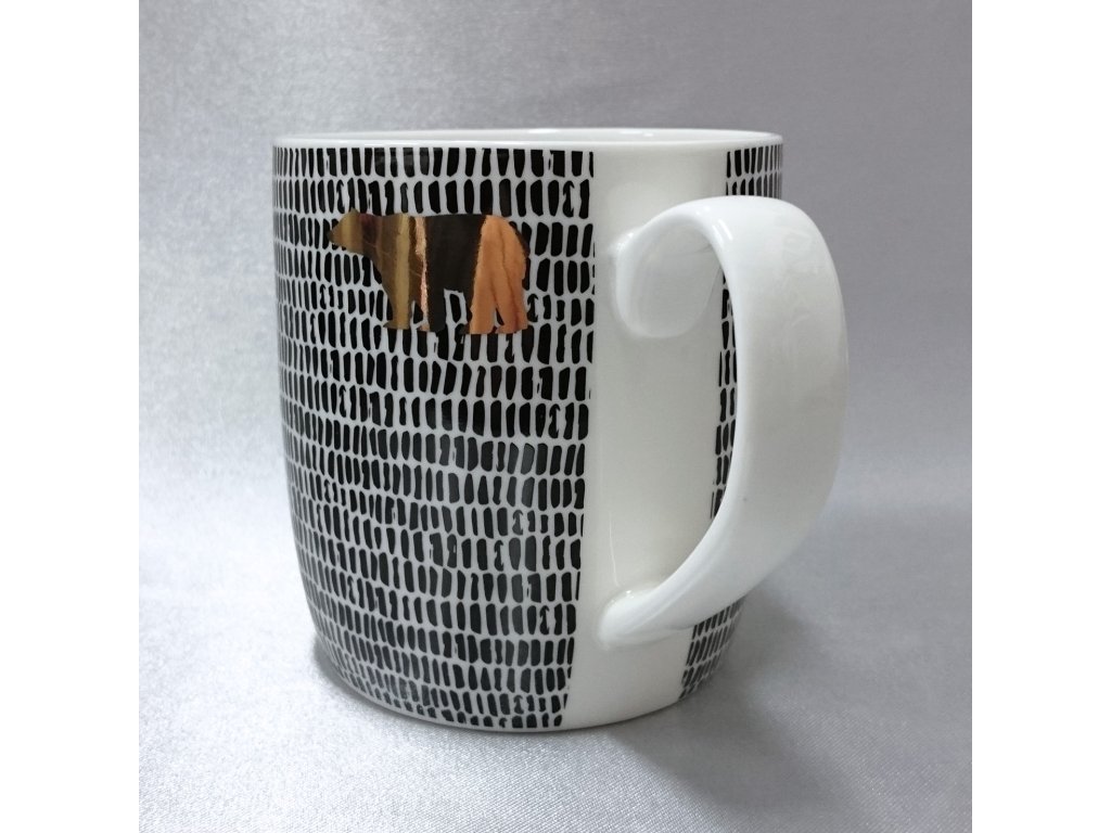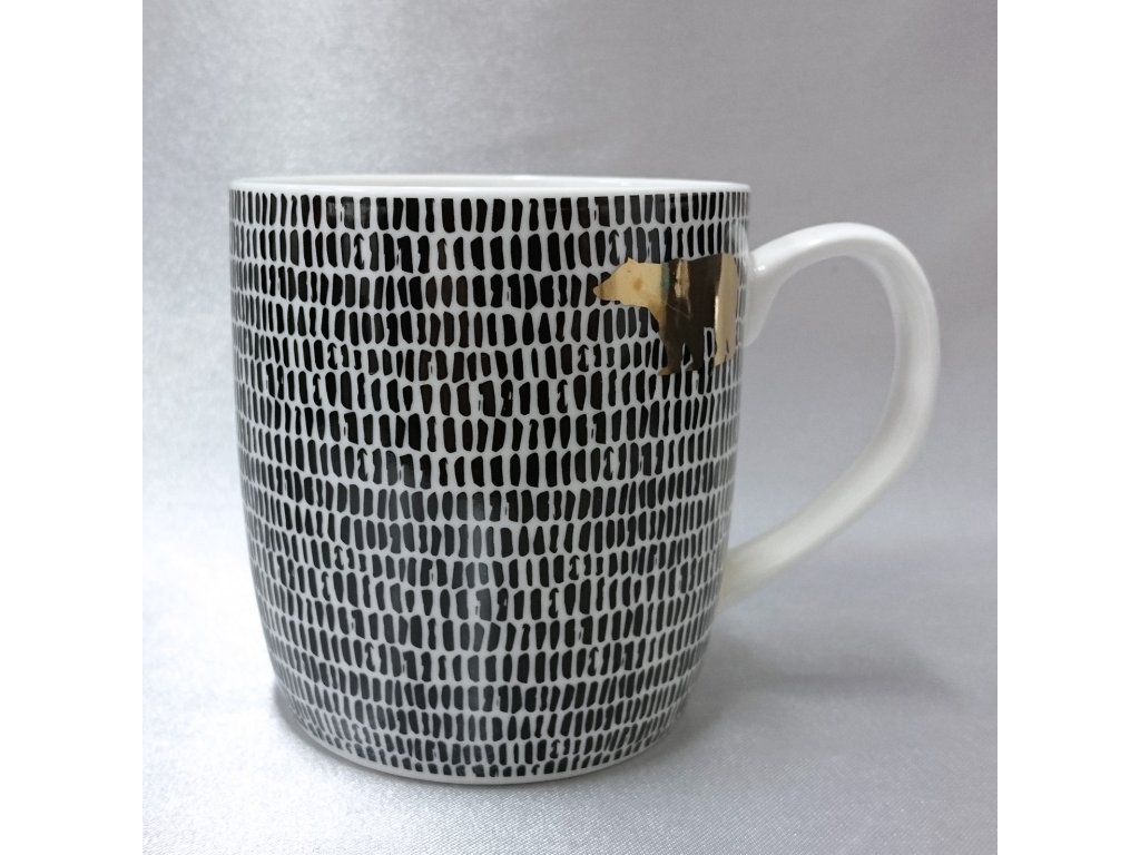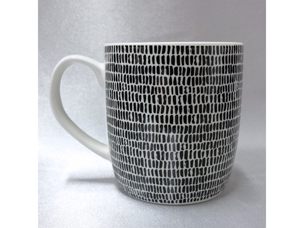 Větší porcelánový hrnek s pohodlným ouškem a nadčasovým černobílým vzorkem.