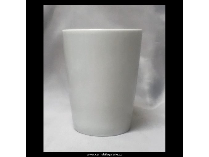 Jednoduchý větší hrnek bez ouška má klasický kónický tvar a lesklou bílou glazuru.