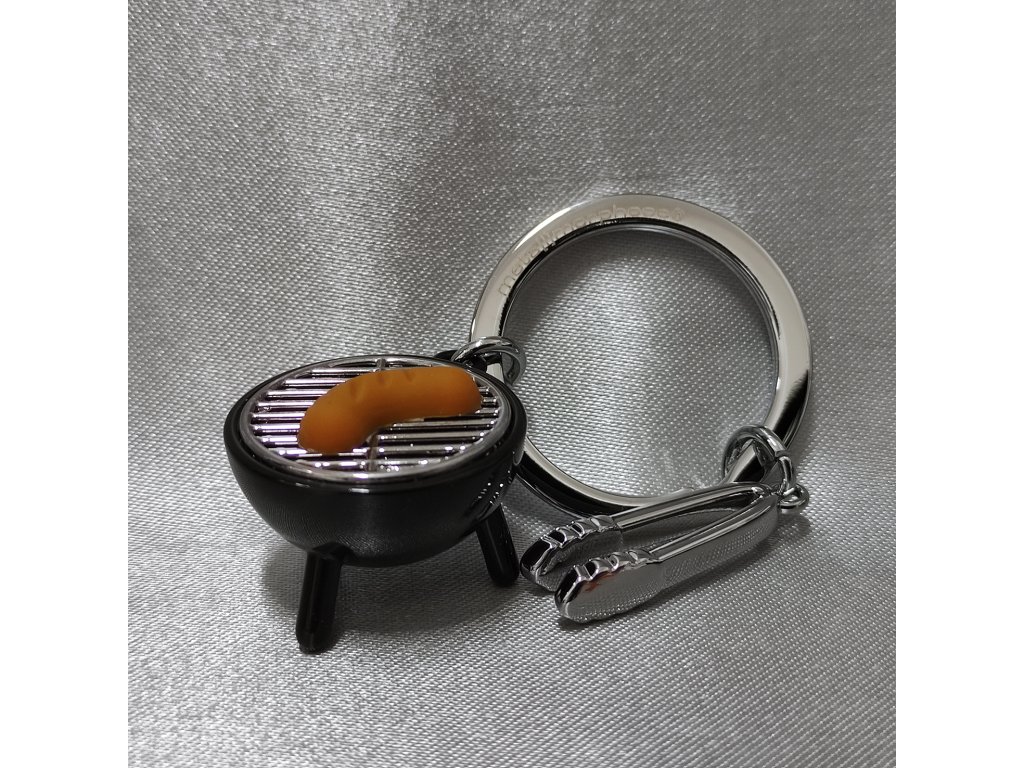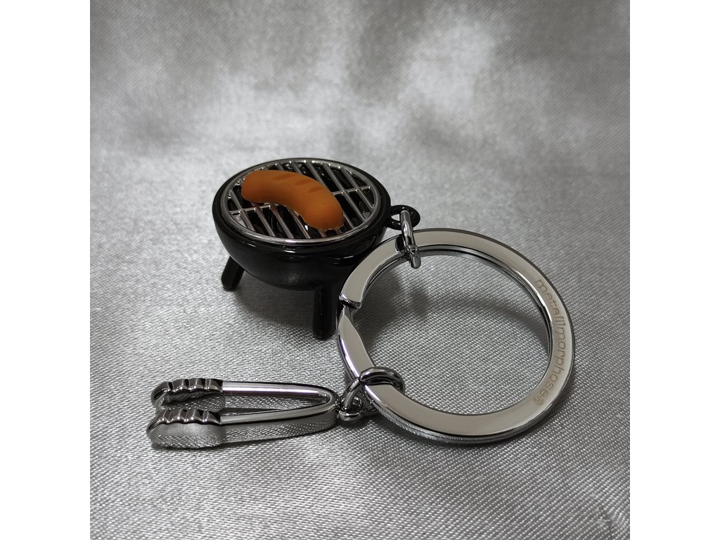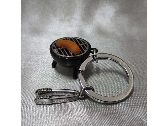Kvalitní kovový kroužek na klíče s přívěsky kulatého grilu a kleští na obracení.