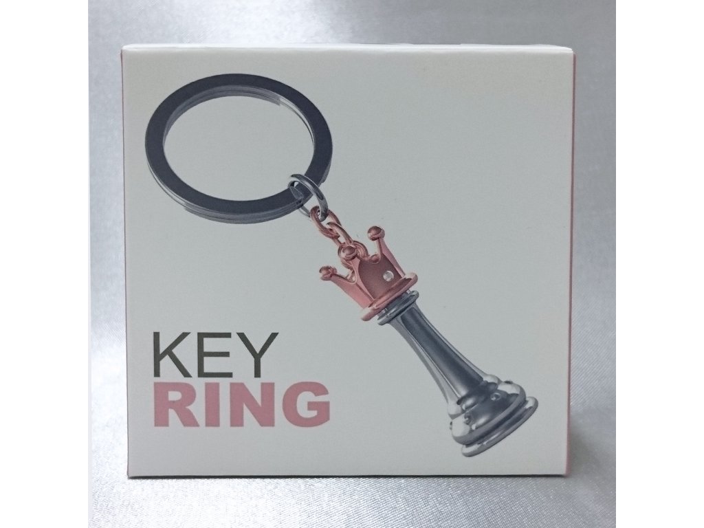 Kvalitní kovový kroužek na klíče s přívěskem figury šachové královny s drobným zirkonem.