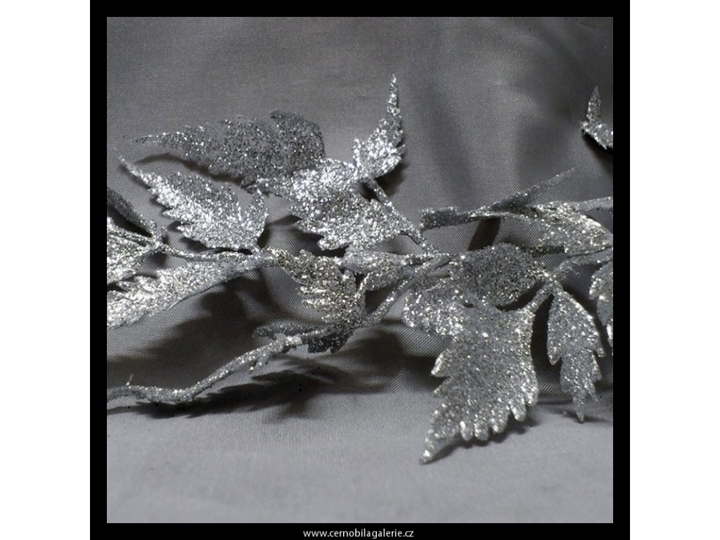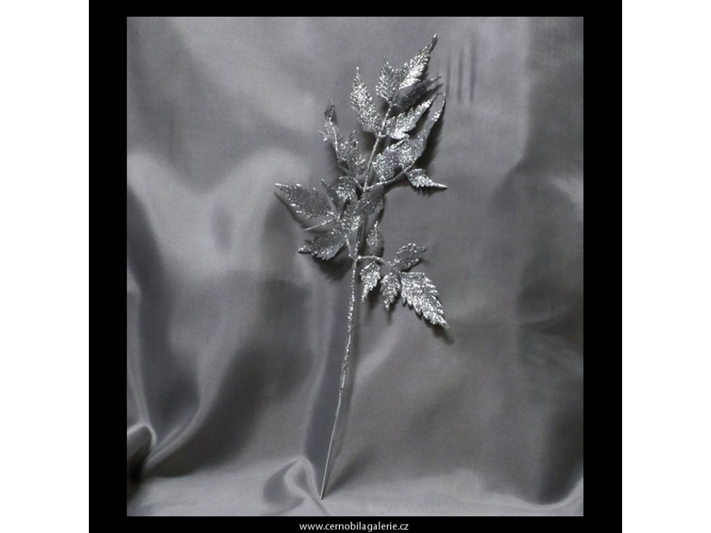 Kapradí kompletně zdobené glitry ve stříbrné barvě, ideální jako přízdoba zejména pro vánoční vazby, aranžmá nebo adventní věnce.