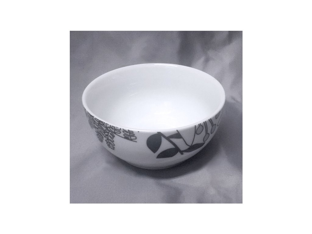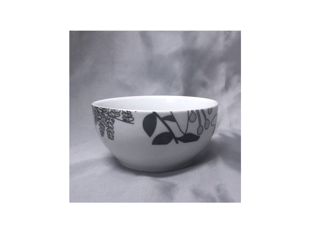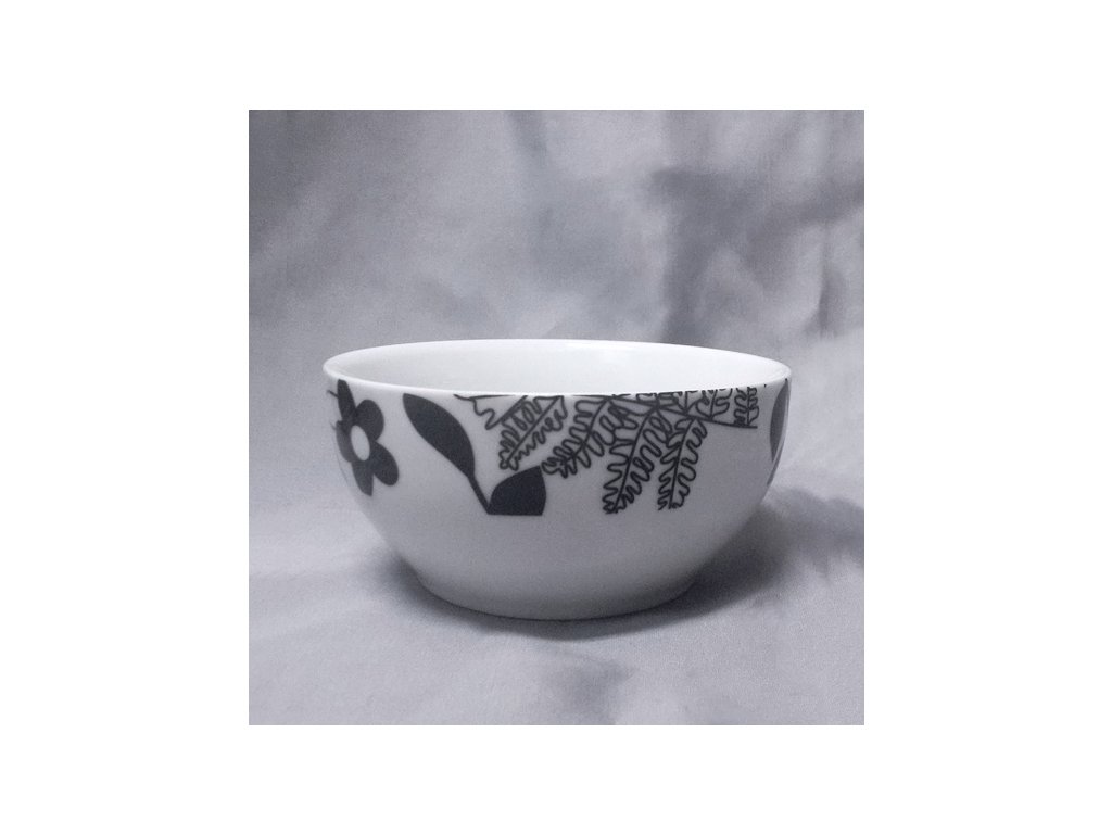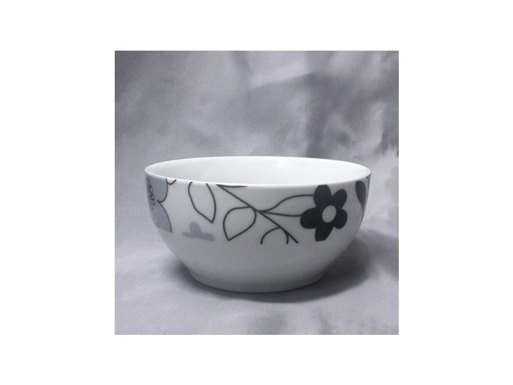 Velká porcelánová miska s květinovým dekorem v černošedém provedení.