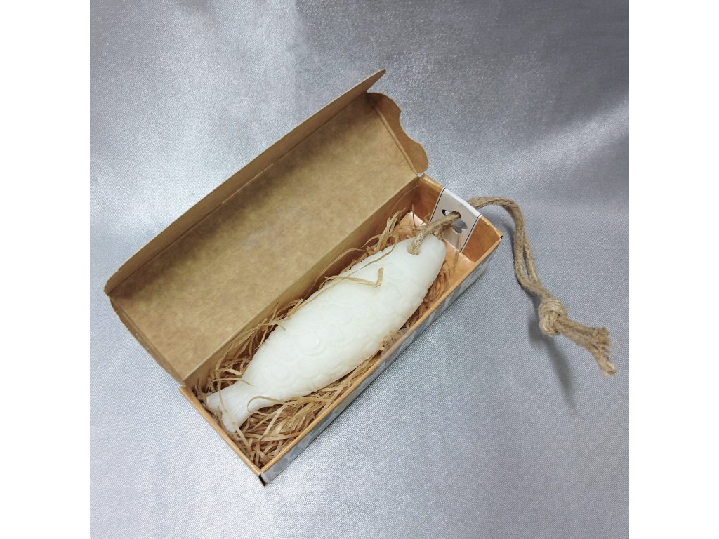Jemné mýdlo ve tvaru sardinky na provázku se svěží vůní citrónu a mořské soli.