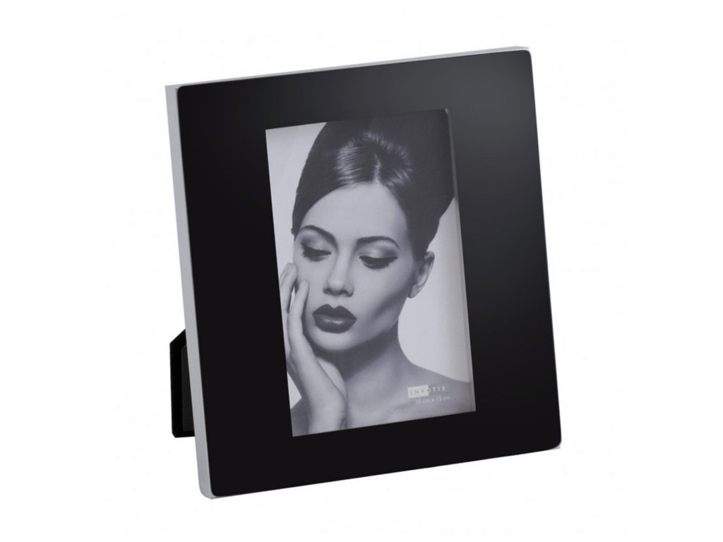 Krásný rámeček s černým sklem a nerezovou hranou pro fotografie ve formátu 10 x 15 cm.