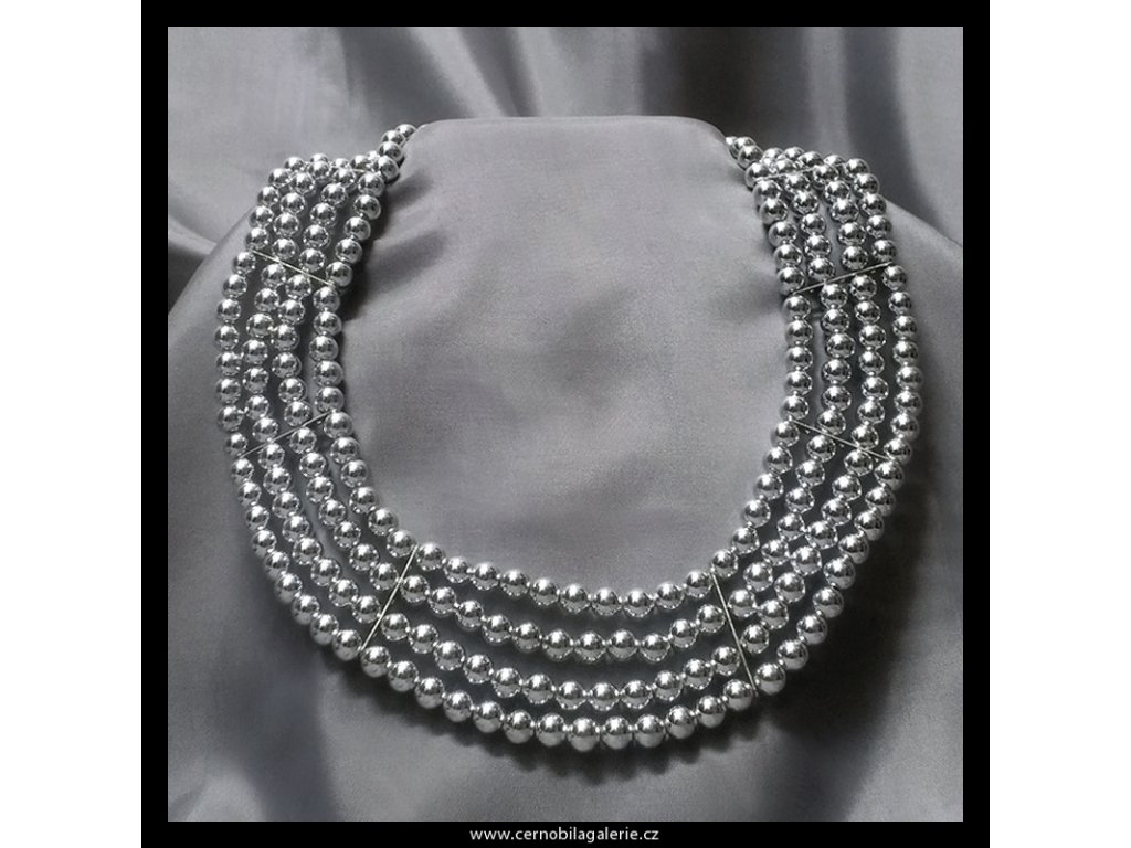 Náhrdelník ze stříbrných perliček s kovými dělícími prvky, díky nimž krásně drží tvar.