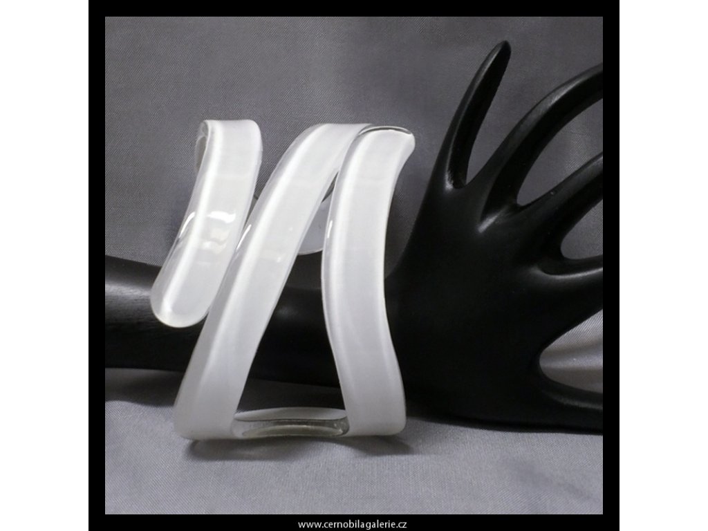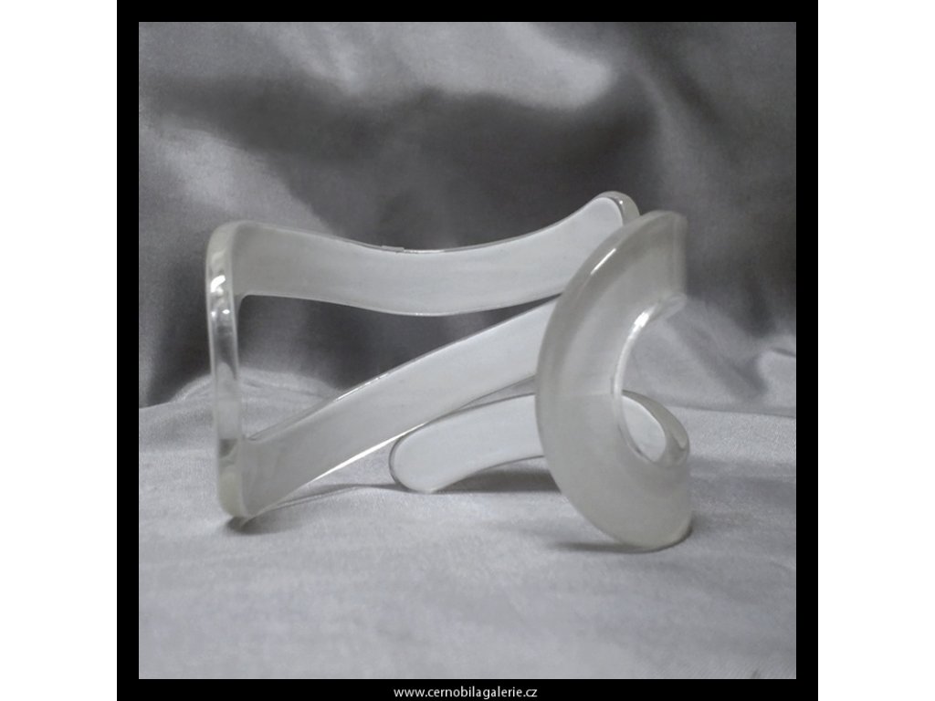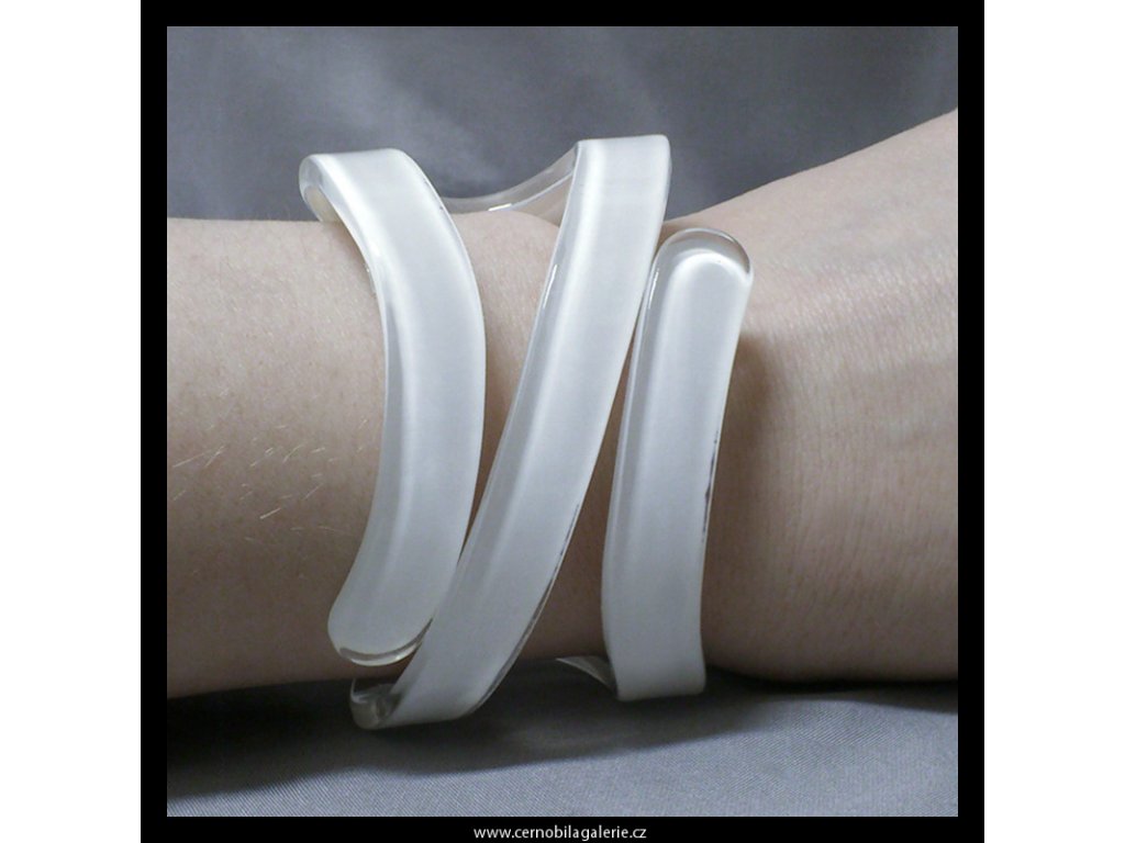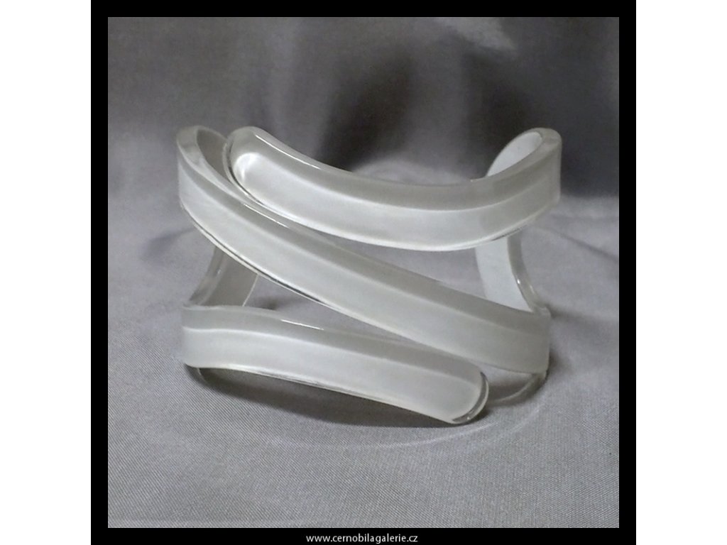 Zajímavý plastový náramek v bílé barvě má otevřený C tvar a vynikne zejména v létě na opálené pokožce.