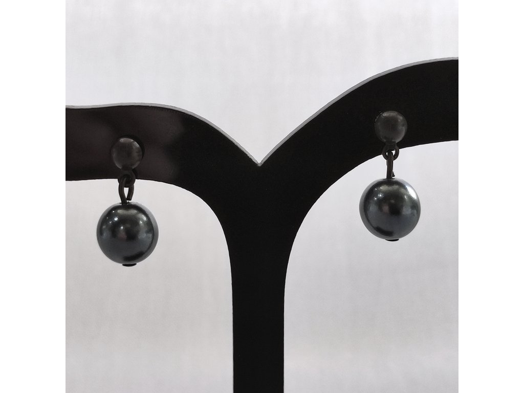 Klasické náušnice se zavěšenou perlou v šedé barvě.