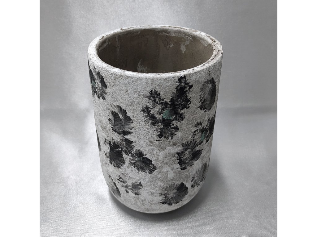 Vyšší jednoduchý betonový obal s černými fleky, které imitují zašlou patinu.