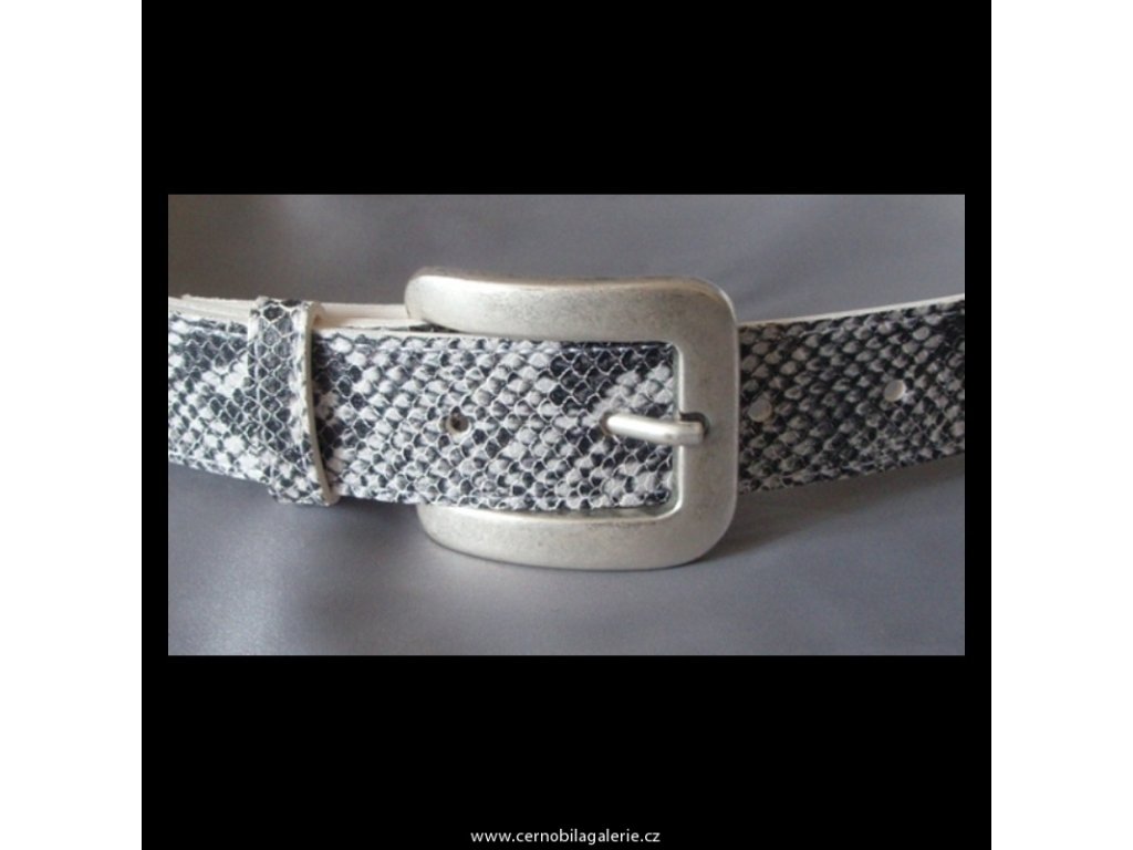 Pásek z imitace hadí kůže s klasickou obdélníkovou sponou z matného starokovu.