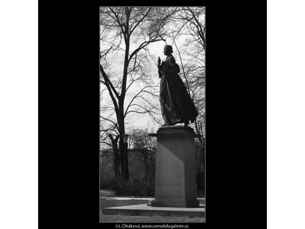 Plastika Boženy Němcové umístěné na Slovanském ostrově, autor Karel Pokorný.