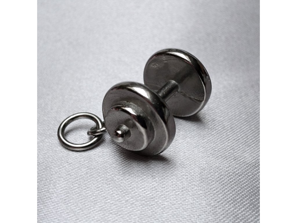 Vzpěračská činka z lesklé chirurgické oceli jako přívěsek.