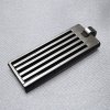 Obdélníkový přívěsek z chirurgické oceli zdobený pruhy s černou výplní.