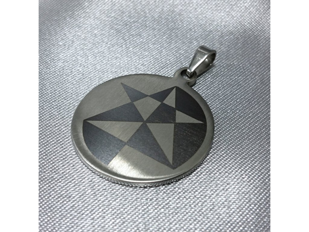 Kruhový přívěsek z chirurgické oceli s černým grafickým zdobením.
