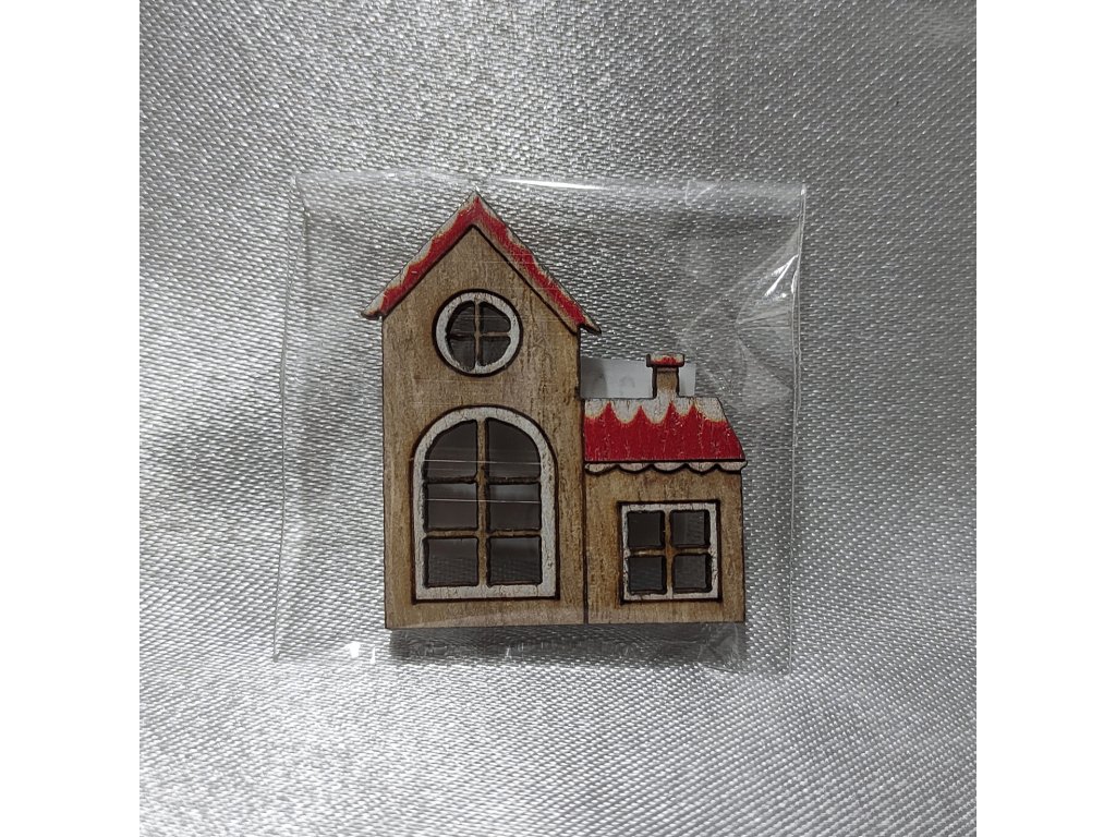 Krásný dřevěný dvojdomek jako samolepící přízdoba na dárky i k dalšímu tvoření.