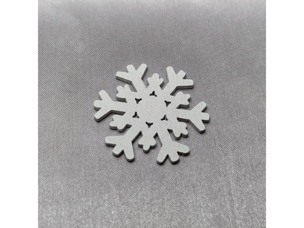 Dřevěná přízdoba ve tvaru bílé vločky se hodí zejména pro zimní a vánoční tvoření a zdobení.