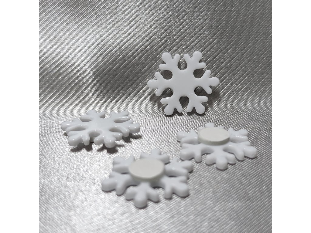 Bílé plastové vločky jako samolepící přízdoba na dárky, jmenovky, přání nebo k dalšímu kreativnímu tvoření.