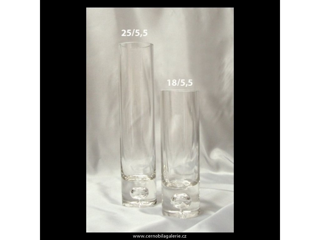 Válcová váza z čirého skla s vyšším dnem kde je ve skle bublina.