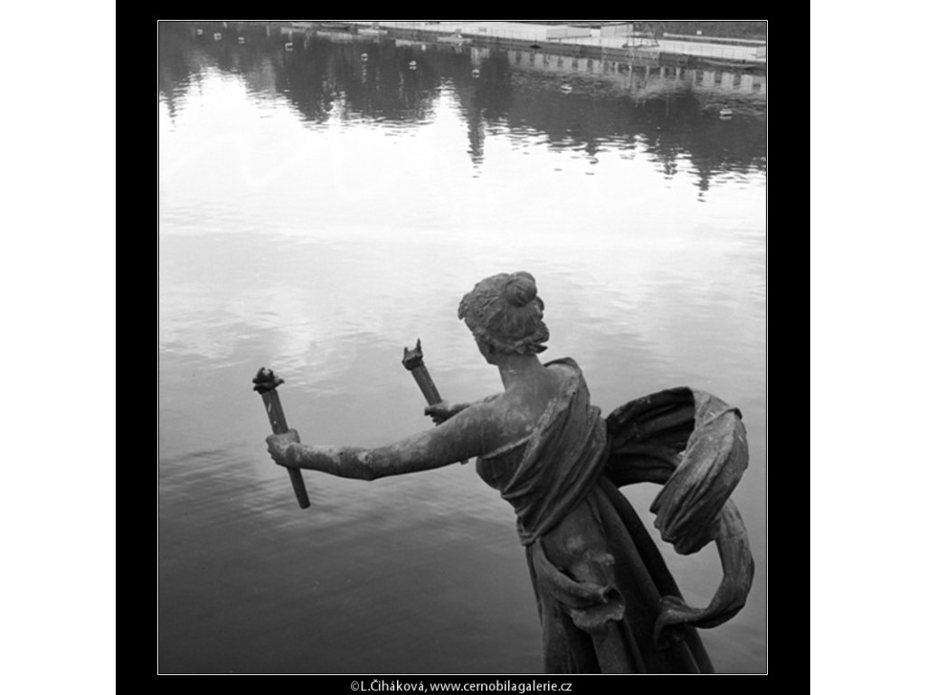 Na první kuk a pro hledání podobných: socha, Vltava, hladina, most Svatopluka Čecha