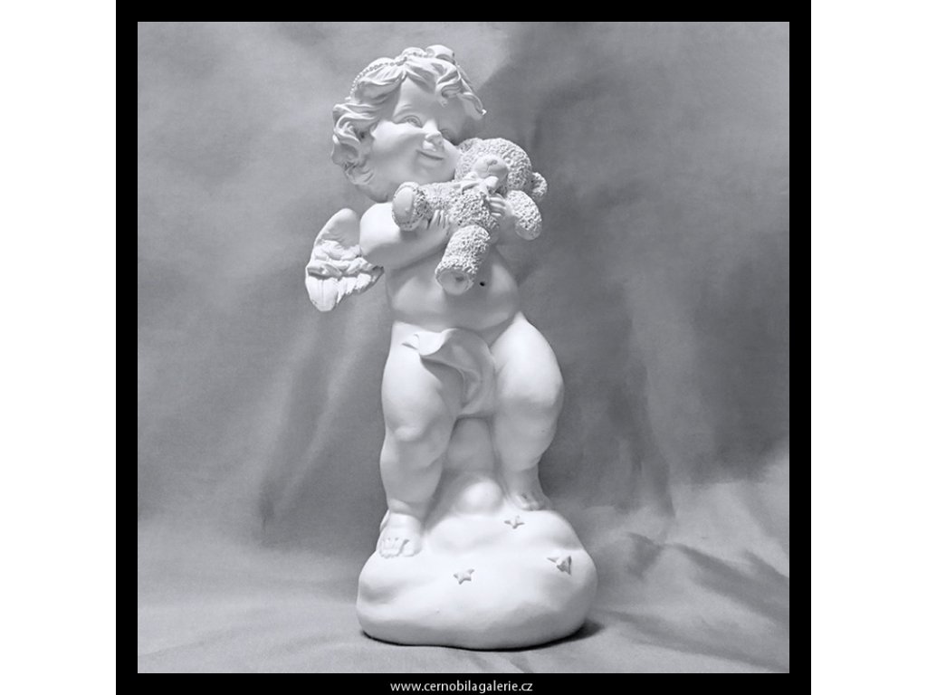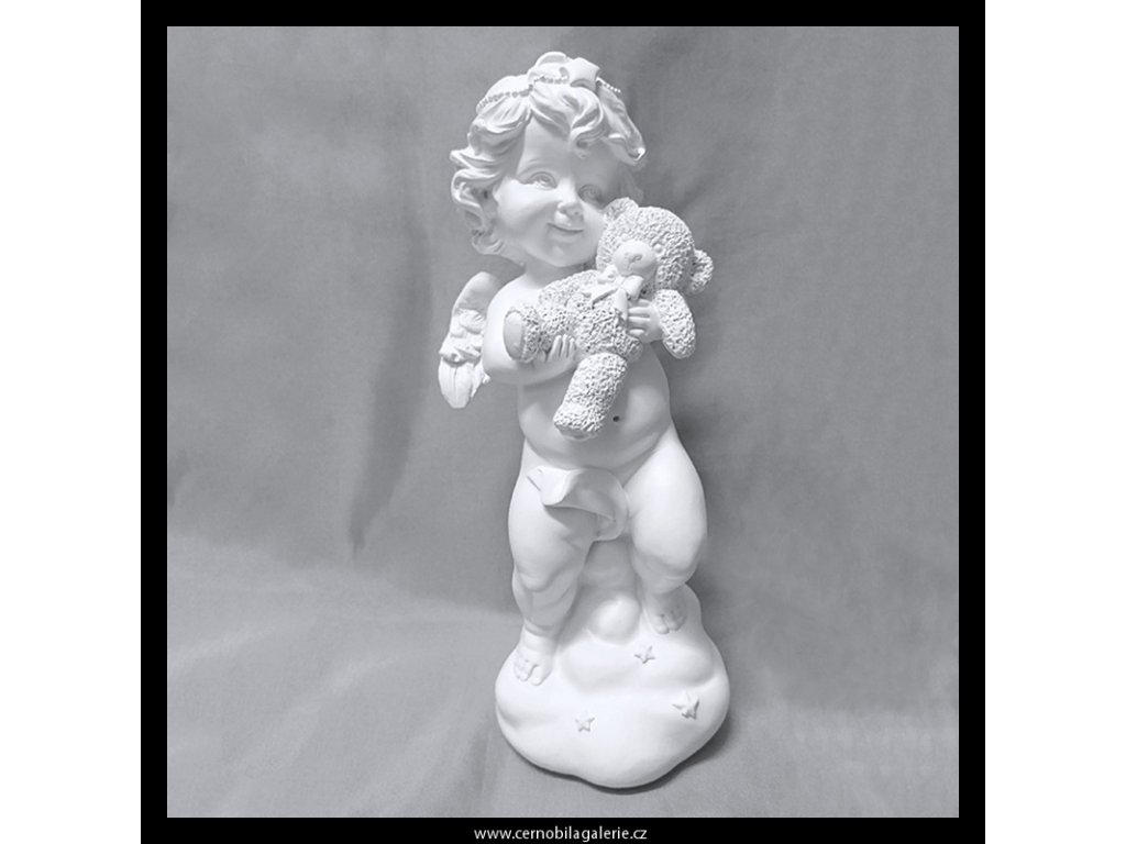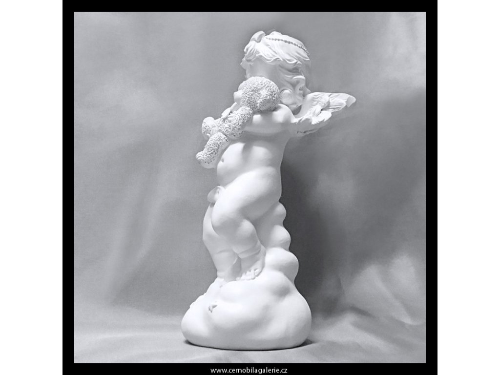 Velká figurka anděla s medvídkem v náručí v bílém matném provedení.