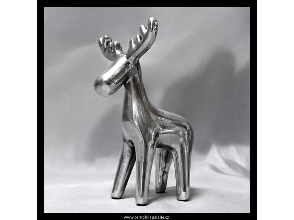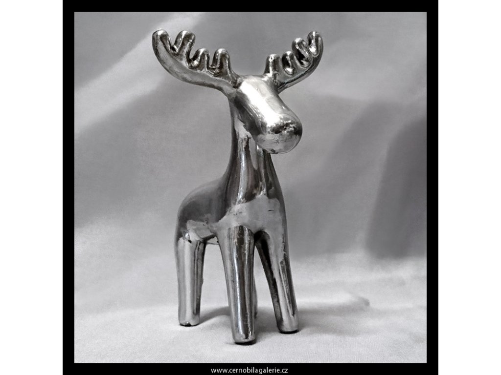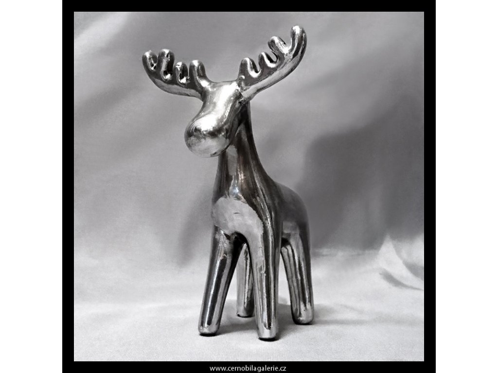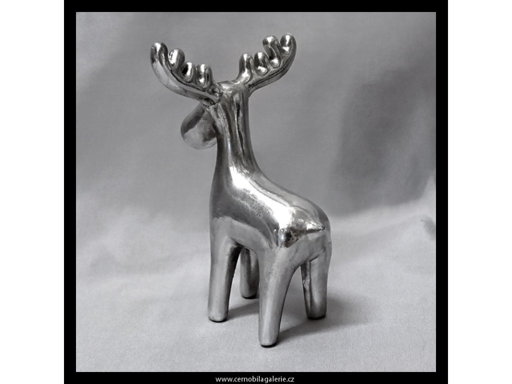 Keramická dekorační soška soba s glazurou v barvě zašlého stříbra.