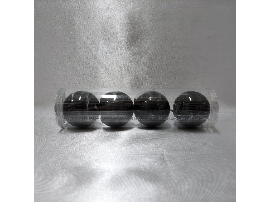 Sada čtyř svíček ve tvaru koule s černým lesklým povrchem, které využijete celoročně nebo na doplnění adventního věnce nebo svícnu.