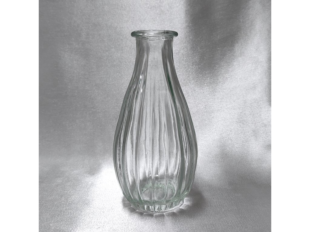 Menší váza s žebrováním a užším hrdlem.
