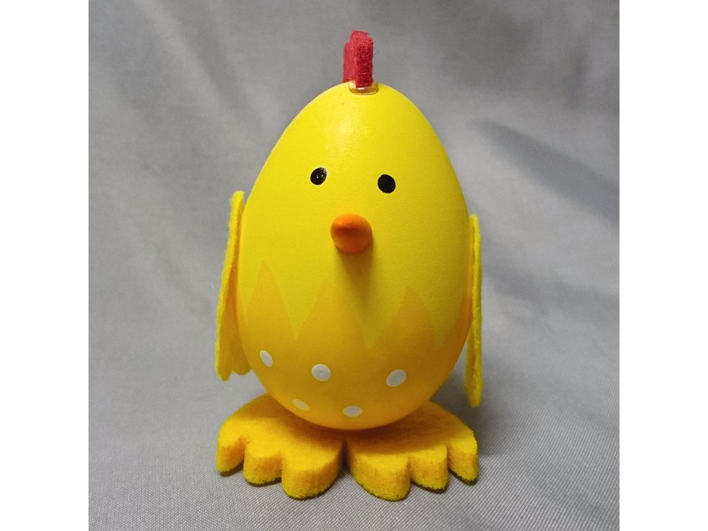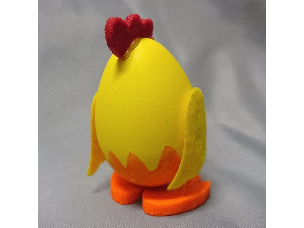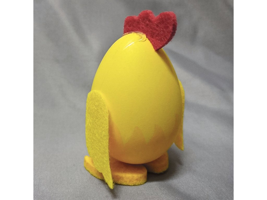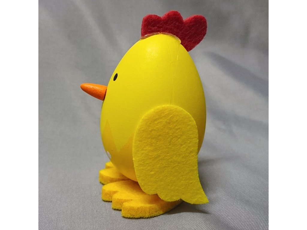 Velké kuře v jasně žluté barvě jako velikonoční dekorace, kterou lze postavit na okno, stůl nebo ho můžete použít na přizdobení věnce, hodí se i jako drobný dárek nebo výslužka pro koledníky.
