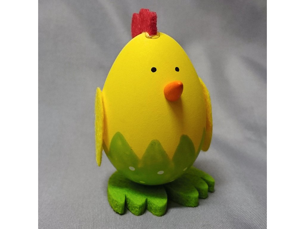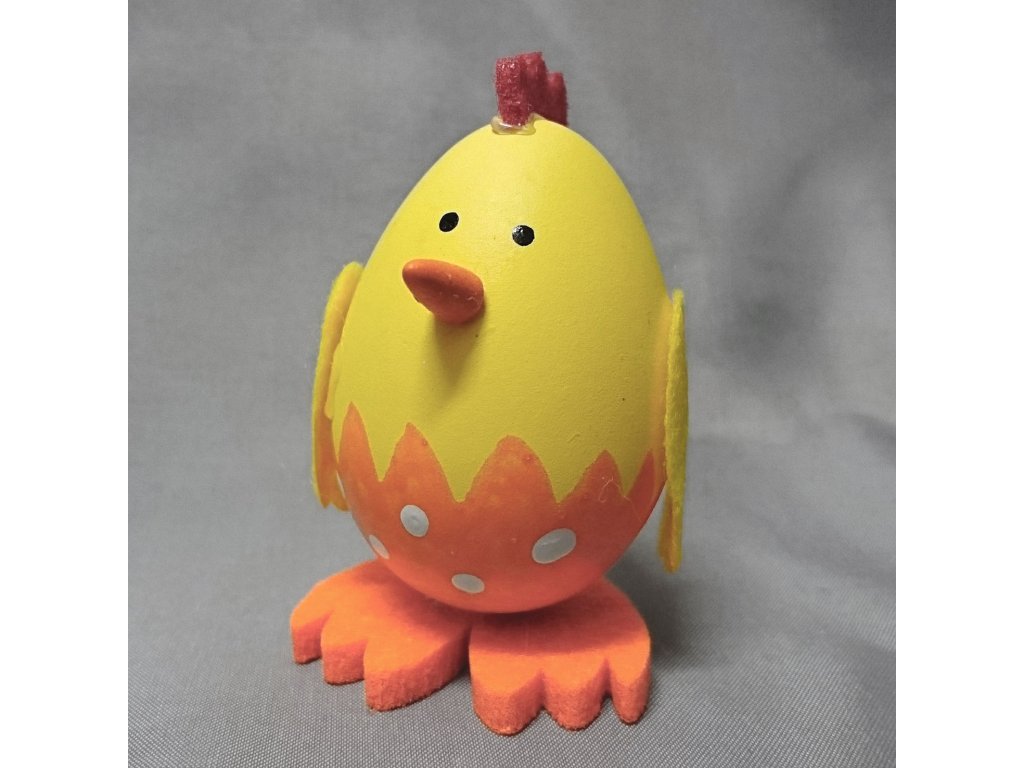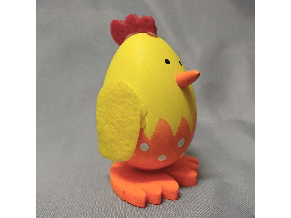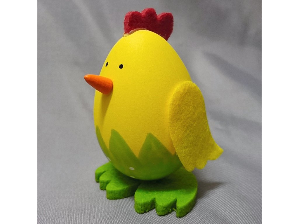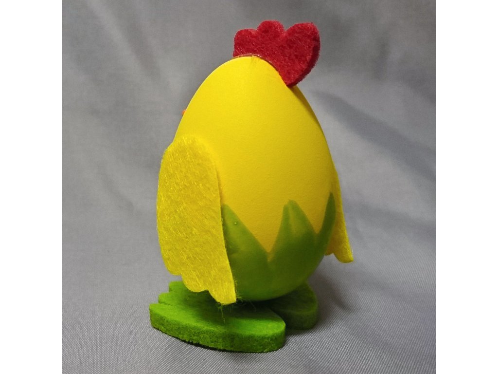 Velké kuře v jasně žluté barvě jako velikonoční dekorace, kterou lze postavit na okno, stůl nebo ho můžete použít na přizdobení věnce, hodí se i jako drobný dárek nebo výslužka pro koledníky.