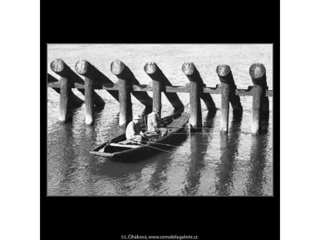 Na první kuk a pro hledání podobných: Novotného lávka, Vltava, loďka, rybáři, pylon